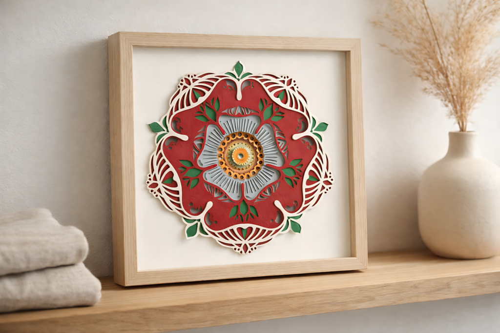 Part of what makes rose shadow box SVG templates so versatile is the combination of depth, framing, and display-ready finish. A flat papercut is lovely. A layered, framed piece with genuine shadow depth is something you want to hang.